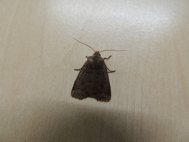 A Shoulder Stripe and Mottled Grey were caught in the moth trap.